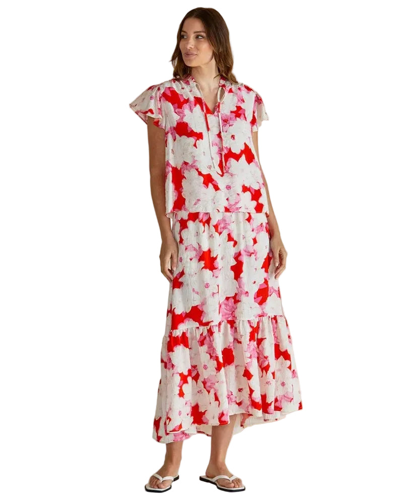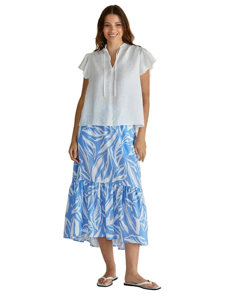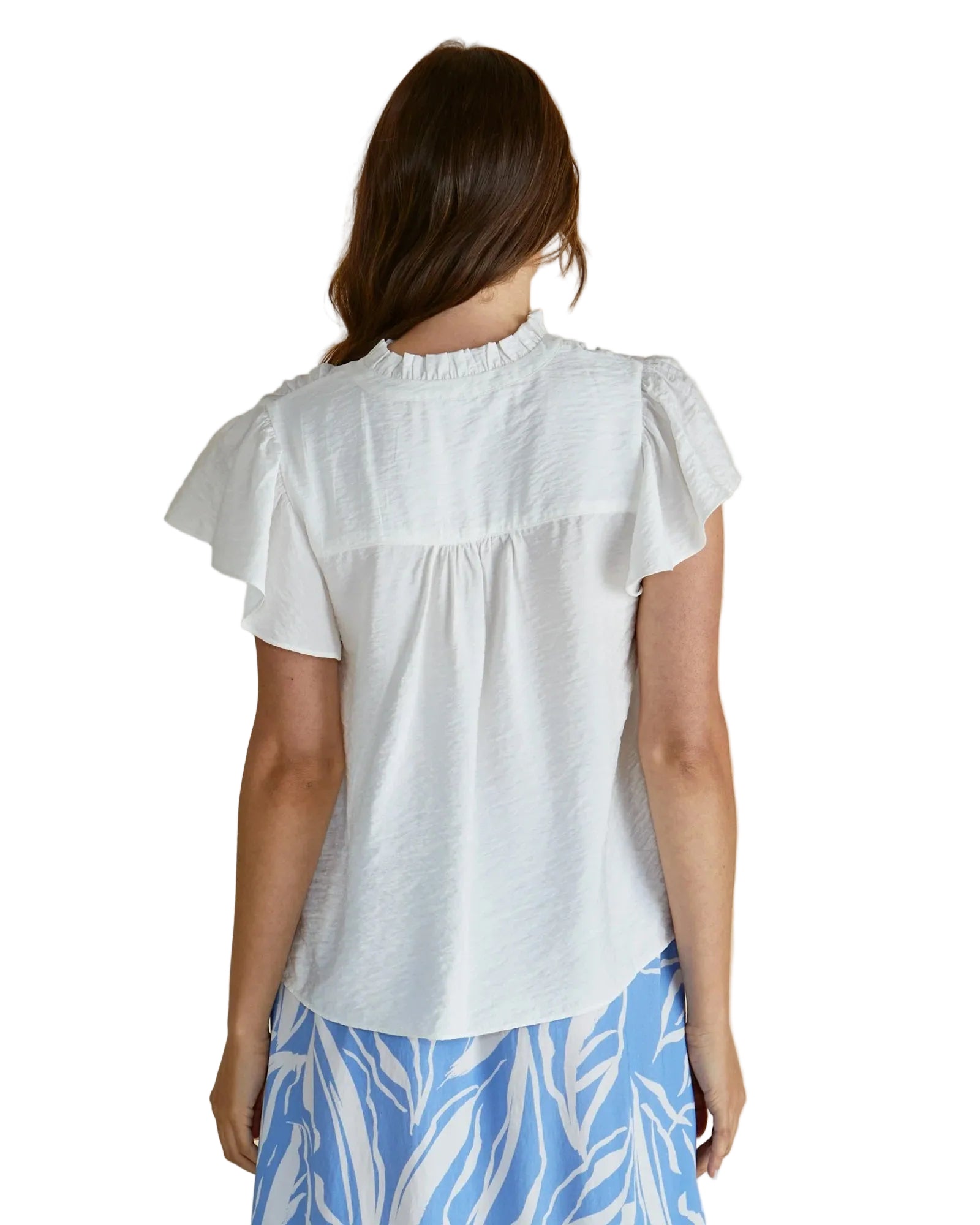The Betty Basics Ruffle Detail Blouse is your go-to for effortless charm. This romantic top features a playful round keyhole neckline with a tie-up detail, flutter sleeves, and a charming ruffled collar that adds just the right amount of personality. Shirred panels create soft texture and visual interest, while the relaxed fit keeps you comfortable from morning to night. Perfect for layering or wearing solo, it's the transeasonal piece that works as hard as you do—with twice the style.
