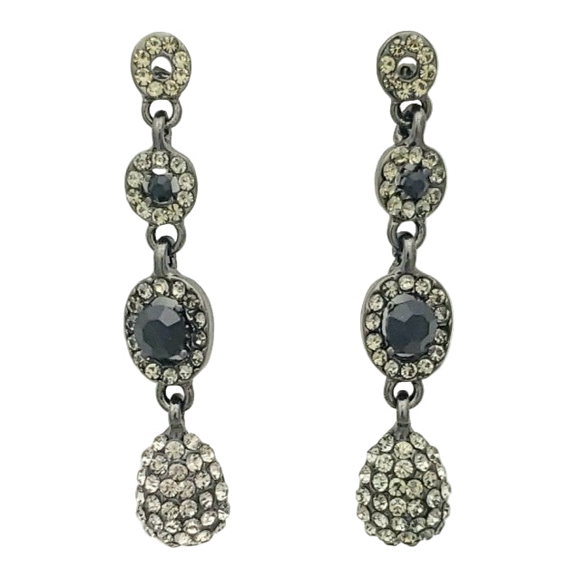 Elevate your everyday elegance with these striking drop earrings, featuring lustrous jet and black diamond crystals set in hematite-plated tin alloy. The sophisticated post-back design ensures secure, comfortable wear throughout your day. At 6 cm in length, they offer a refined presence without overwhelming your silhouette. Surgical steel posts provide durability and hypoallergenic comfort, making these versatile pieces perfect for both special occasions and refined daily styling.