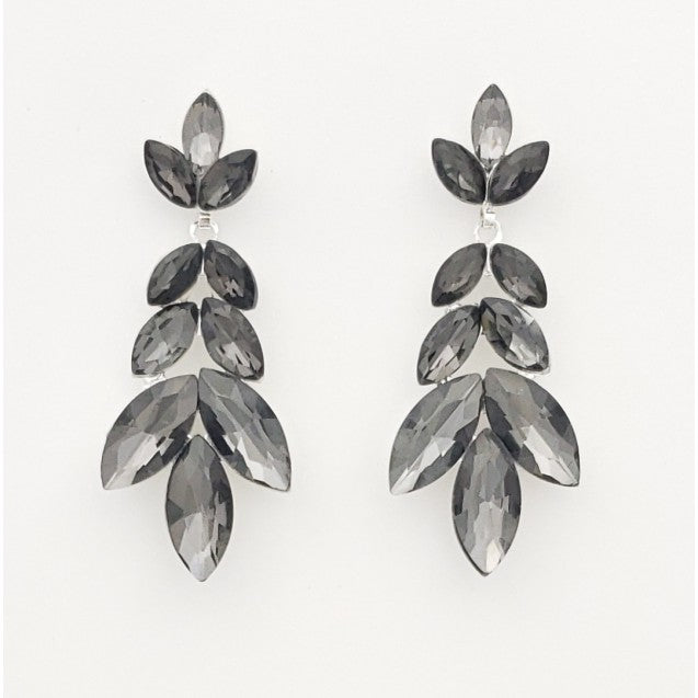 Elegant leaf-shaped drop earrings adorned with black diamond crystals that catch light with every movement. Crafted from brass with silver plating for a refined finish, these 5 cm earrings feature surgical steel posts for comfortable, secure wear. A versatile piece that transitions seamlessly from day to evening, adding understated luxury to any ensemble.