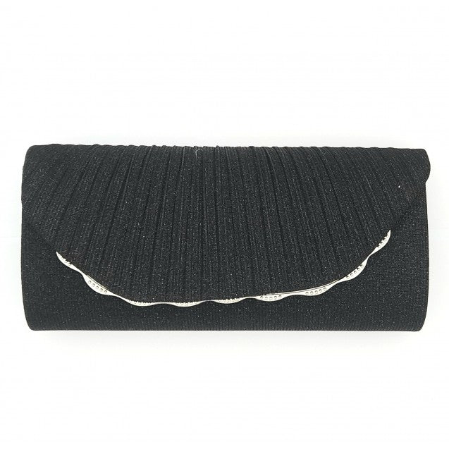 Crystal Waters Shimmer Purse combines understated elegance with practical design. This compact clutch features a delicate silver scalloped detail that catches the light beautifully, while the detachable chain shoulder strap offers versatile styling—carry it as a clutch or wear it crossbody. The secure snap closure keeps your essentials protected. Perfect for evening occasions or as a refined everyday accessory.