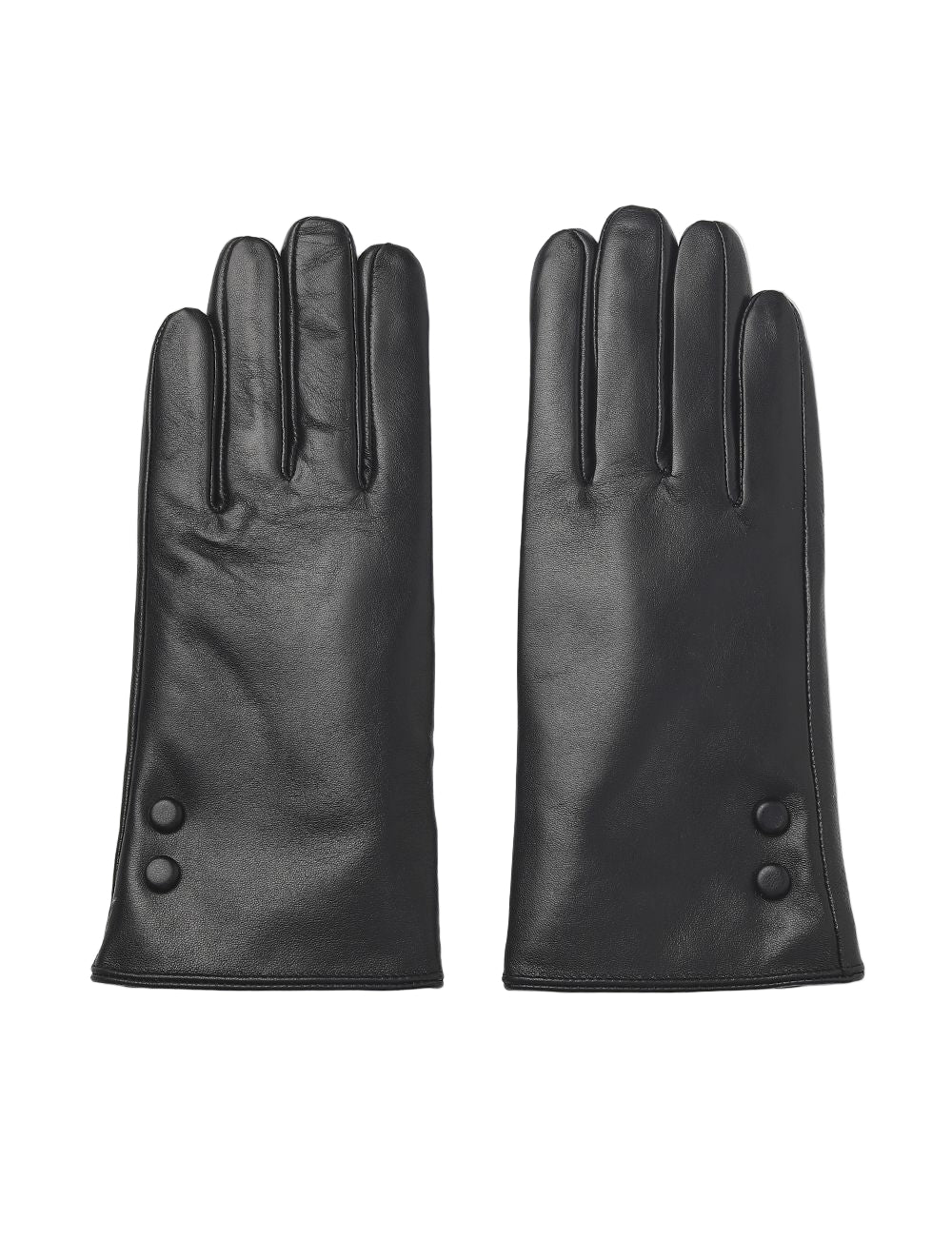 Elevate your winter essentials with these refined faux leather gloves, crafted with a distinctive double button detail at the wrist. The lined interior provides warmth and comfort through cold months, while the sleek faux leather exterior delivers a polished, contemporary aesthetic. One size fits most, making them an effortless addition to any sophisticated wardrobe.