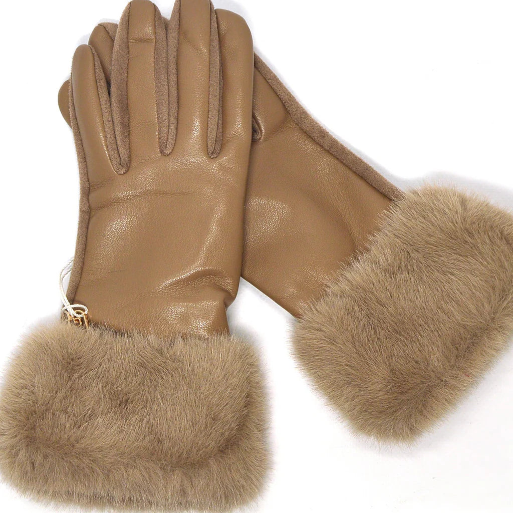 Elevate your winter essentials with these luxurious faux leather gloves, crafted with a refined blend of textures. The supple faux leather top pairs seamlessly with a plush faux suede palm for superior grip and comfort, while a sumptuous faux fur cuff adds an elegant finishing touch. Designed with modern convenience in mind, the touchscreen-compatible fingertips keep you connected without removing your gloves. Perfect for navigating the season in style.