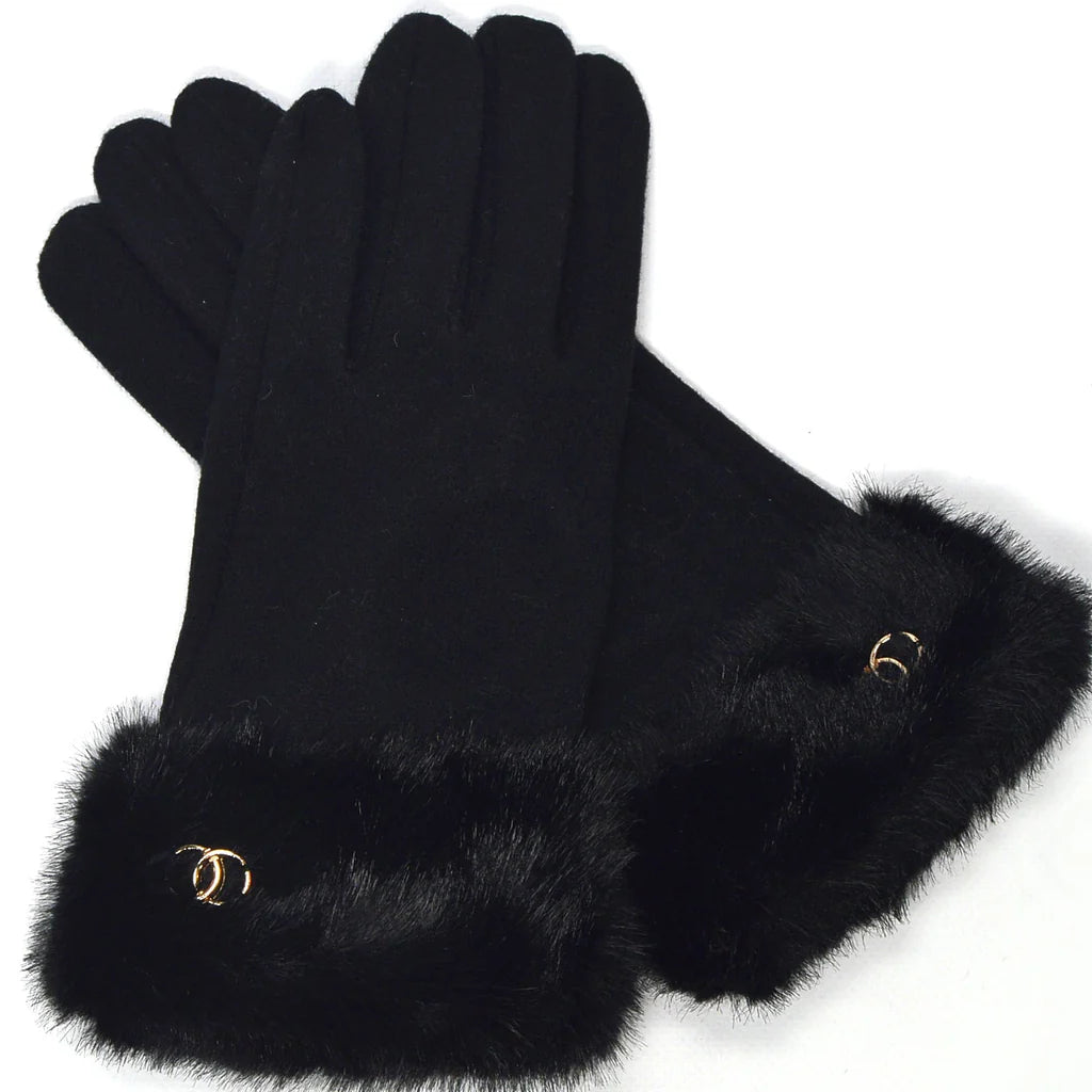 Elevate your winter essentials with these luxurious knit gloves, featuring plush faux fur cuffs and gleaming gold metal hardware for a refined finish. Designed with touchscreen-compatible fingertips, stay connected without removing your gloves. The perfect blend of warmth, style, and modern functionality for the discerning shopper.