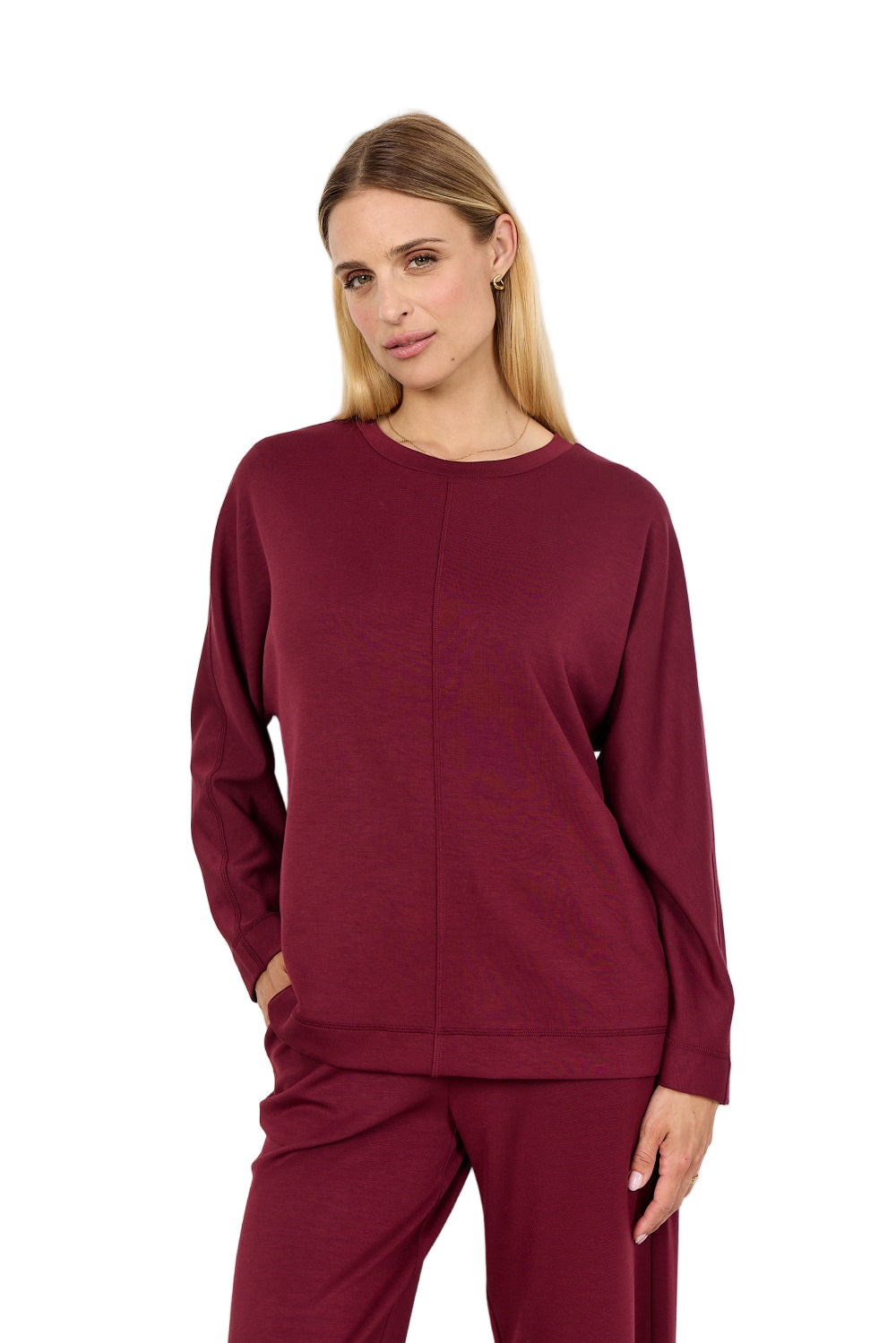 The Soya Concept Sweater blends modern style with comfort through its sleek boat neck and distinctive square cut. Crafted from smooth scuba material, it offers a flattering fit and luxurious feel, while the front seam detail adds a subtle yet chic accent. Long sleeves provide warmth and versatility, making this sweater an effortless choice for elevated everyday wear. Elevate your wardrobe with this contemporary staple designed to keep you looking polished and feeling confident.