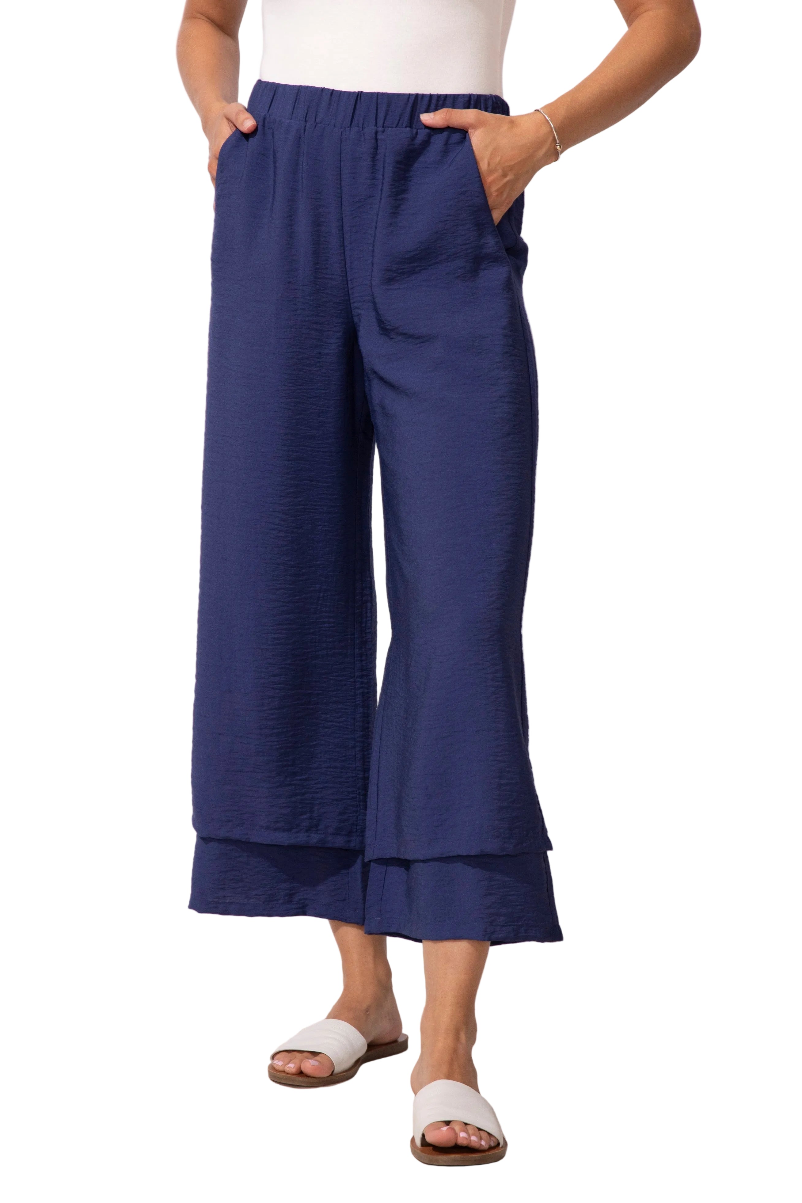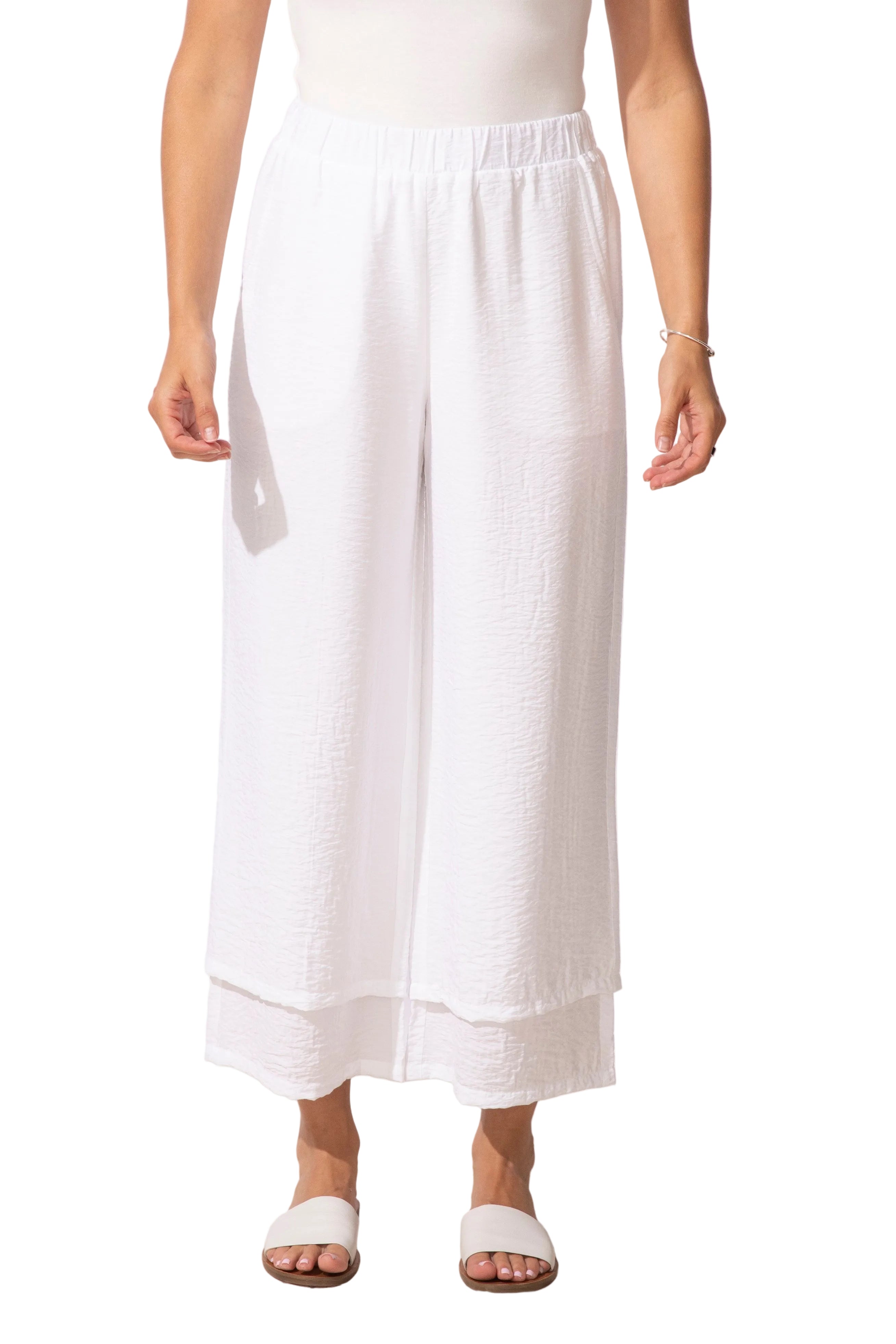 Effortless comfort meets everyday style with the Escape Double Layered Pant. Designed with a pull-on elastic waist for easy dressing and all-day ease, these pants feature practical side pockets to keep your essentials within reach. Crafted from breathable regatta rayon, the fabric drapes beautifully while maintaining its shape. With a 26" inseam, they're cut for a refined silhouette that works for any occasion. Whether you're heading out or staying in, these versatile pants are your go-to choice for relaxed sophistication.