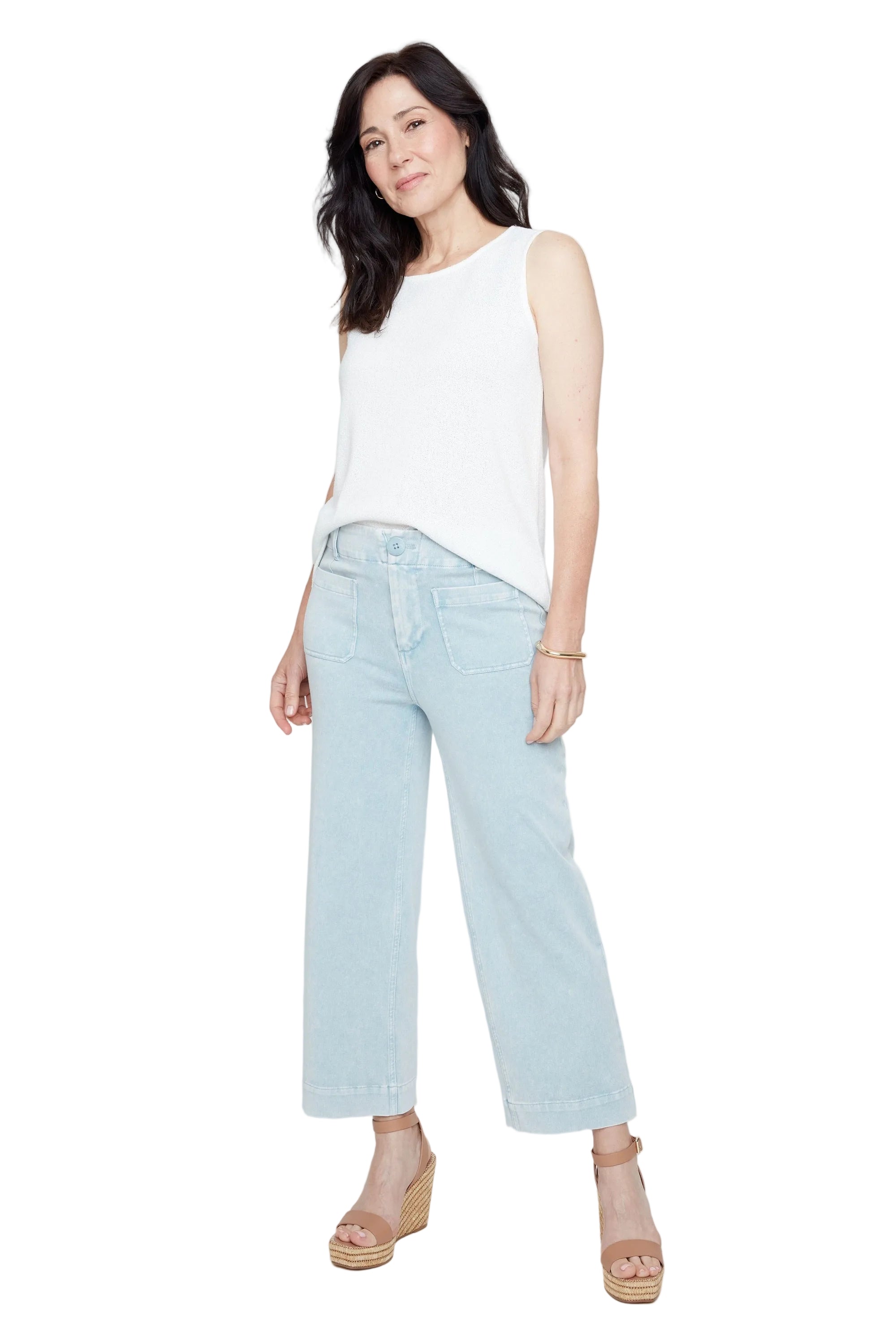 Renuar Denim Cropped Pant features a flattering straight leg silhouette with a 25" inseam and 20" leg opening for a modern, versatile fit. Designed with functional front patch pockets and a classic button and zipper fly, this cropped style works seamlessly from casual weekends to polished office looks. A timeless denim essential that pairs effortlessly with sneakers, flats, or heels.