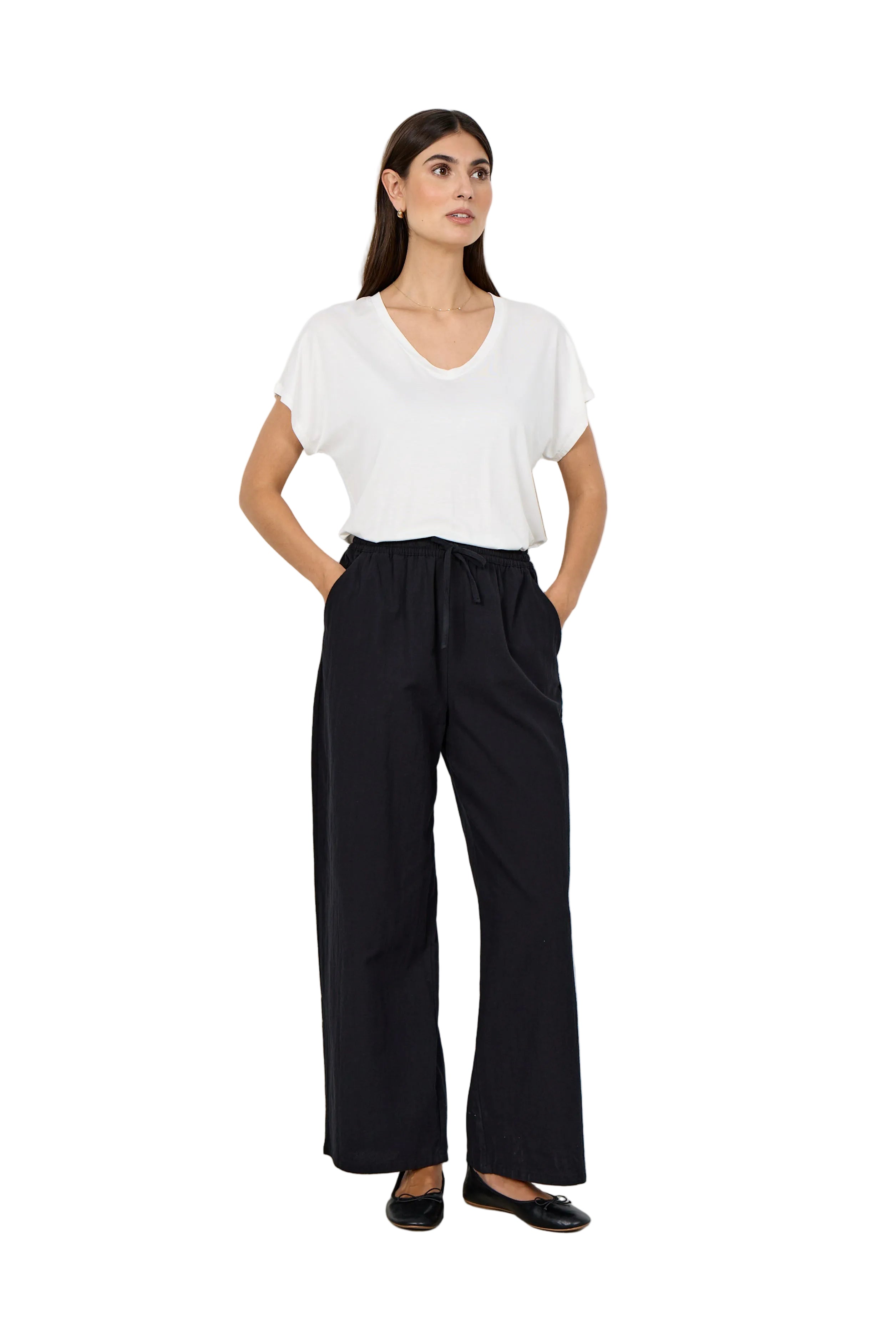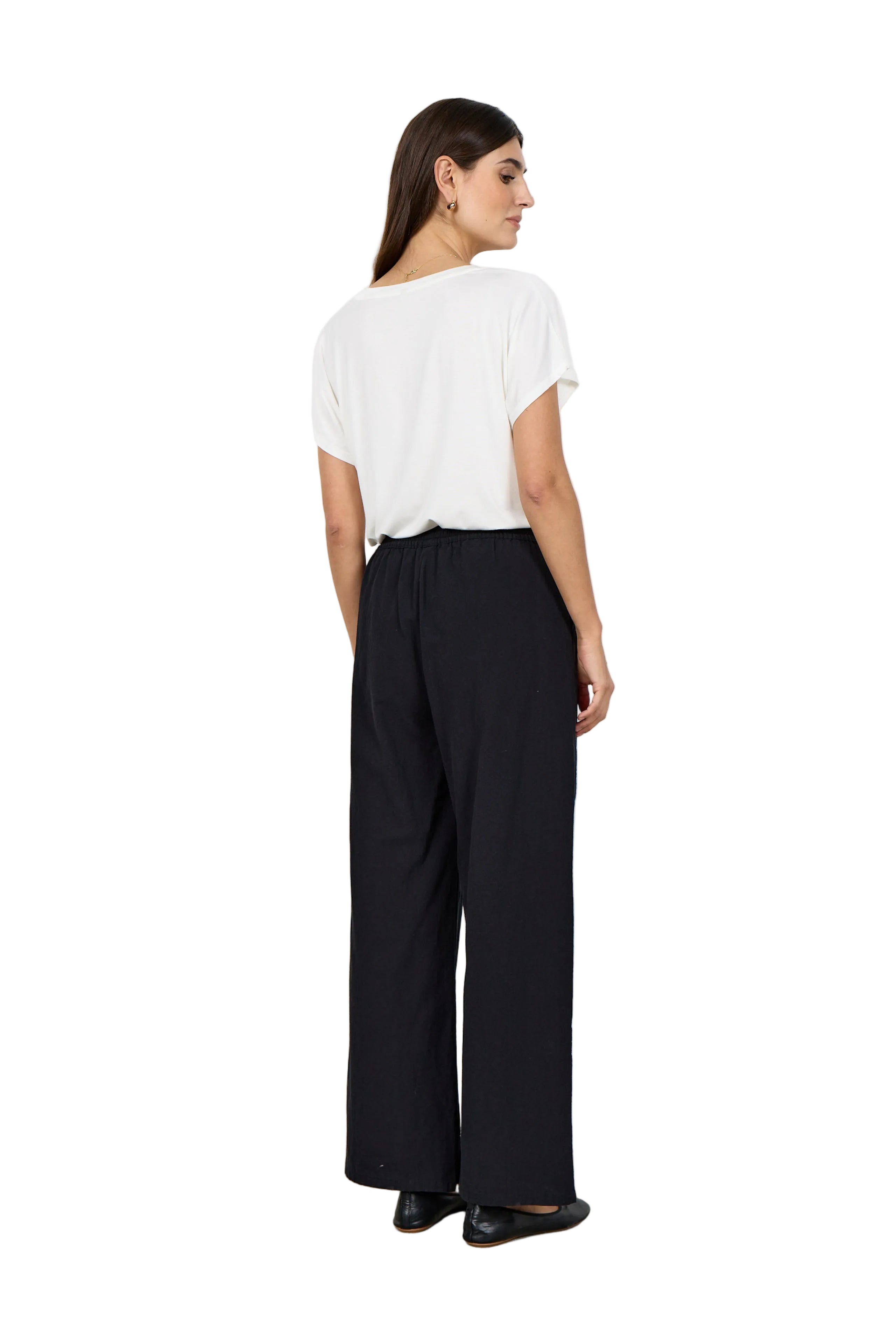 Effortless comfort meets timeless style with these wide-leg trousers crafted from 100% cotton. Featuring a high waist with adjustable drawstrings and a relaxed, loose fit, they're designed for all-day wear. Pair them with an oversized shirt and knitted waistcoat for a polished everyday look, or dress them down with sneakers for casual sophistication. A versatile wardrobe essential that transitions seamlessly from day to night.