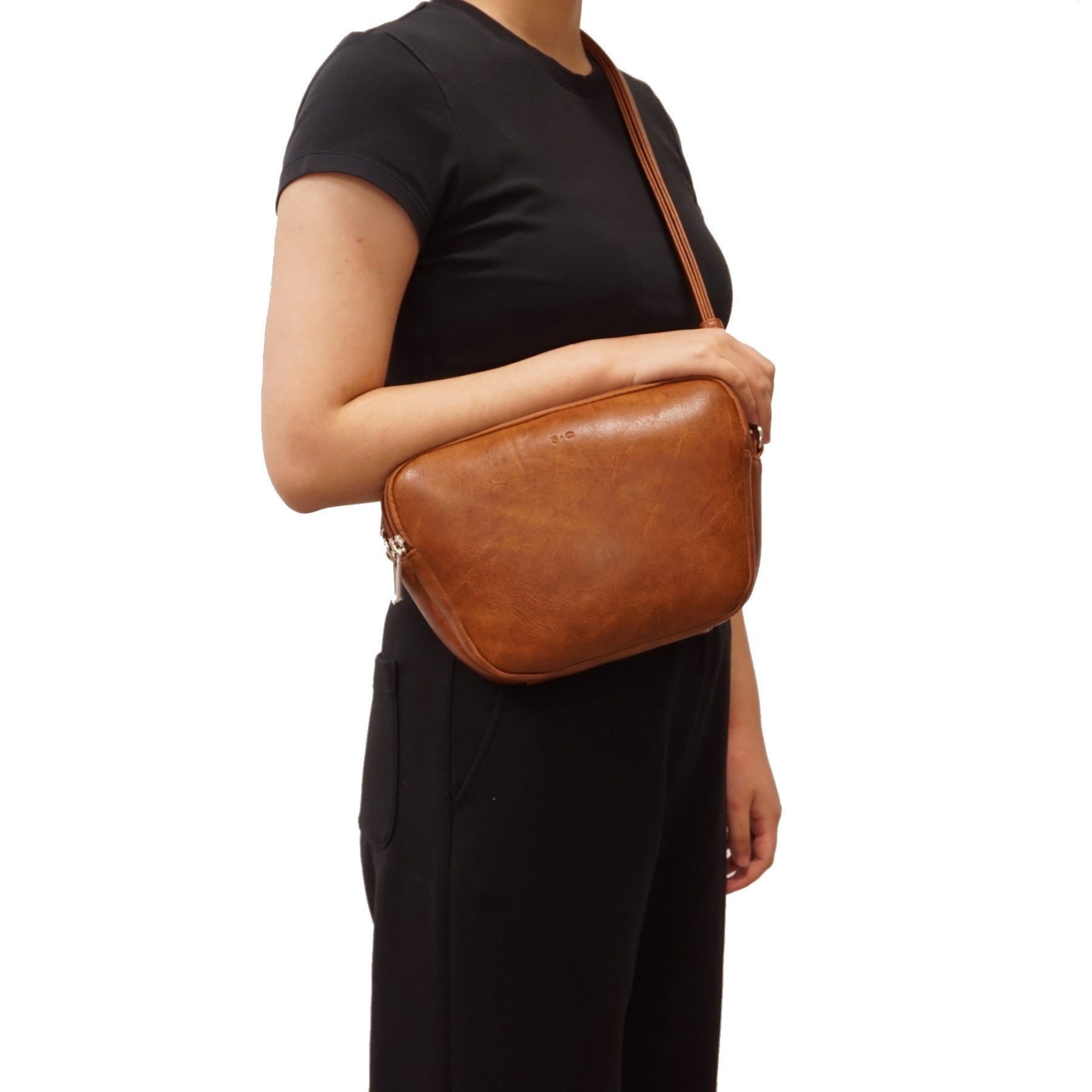 The S-Q Natalie Crossbody Purse is your go-to companion for everyday adventures. This versatile double-compartment bag keeps your essentials organized with zippered closures for security. The removable and adjustable shoulder strap adapts to your comfort, while thoughtful pockets—including a slip pocket and zipper pocket inside, plus a back slip pocket perfect for your smartphone—ensure everything has its place. Crafted from durable polyurethane with a lining made from 100% recycled nylon, it combines style with sustainable design. Whether you're running errands or heading out for the day, this crossbody delivers both functionality and peace of mind.