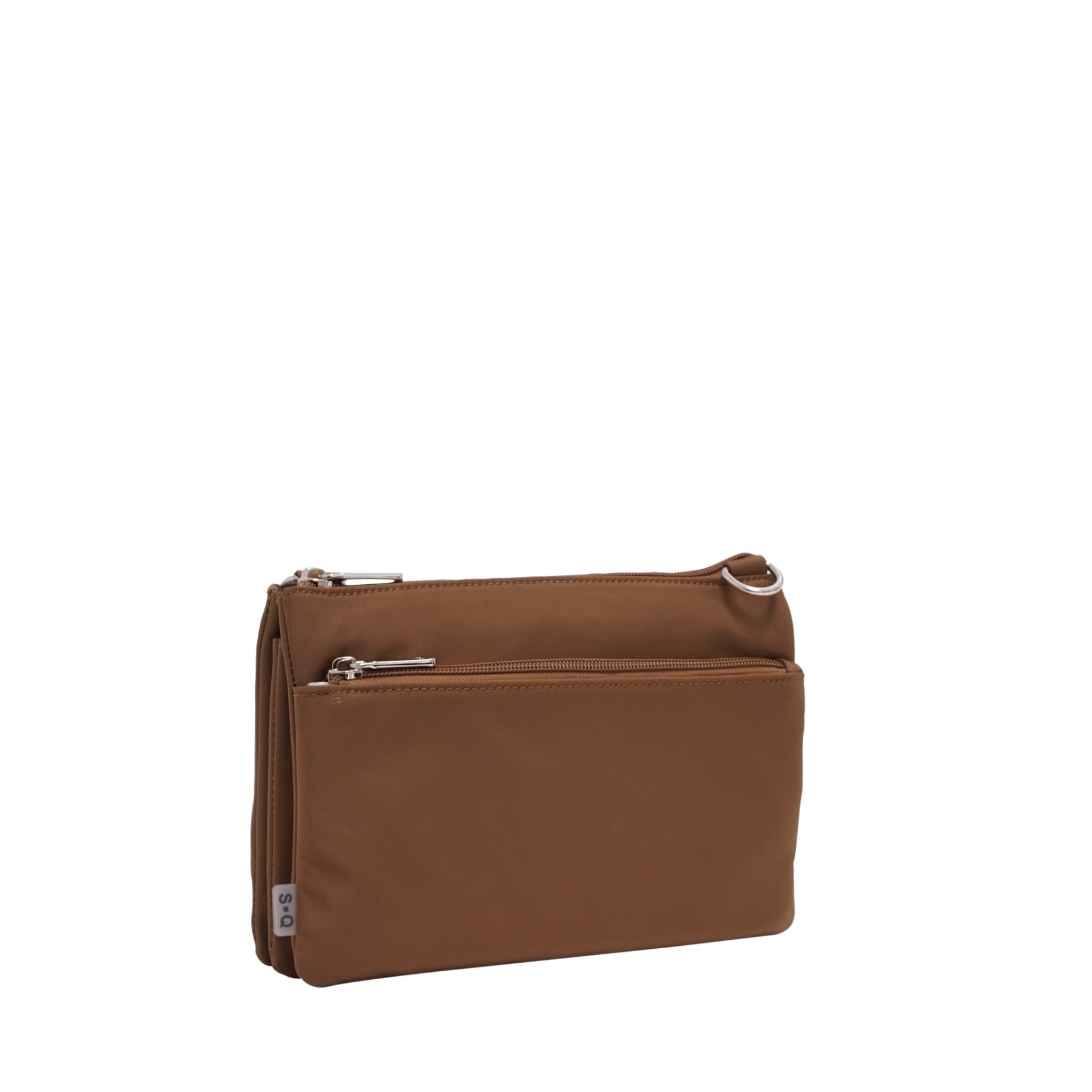 The S-Q Nylon Crossbody is designed for everyday versatility. Wear it on your shoulder or across your body—whatever feels right. The top zipper closure keeps your essentials secure, while the removable and adjustable strap lets you customize the fit. Inside, you'll find three separate compartments including a center zipper pocket, slip pocket, and additional zipper pocket for organized storage. A large front zipper pocket adds quick-access convenience. Crafted from water-repellent nylon with a lining made from 100% recycled materials, this bag combines durability with thoughtful sustainability.