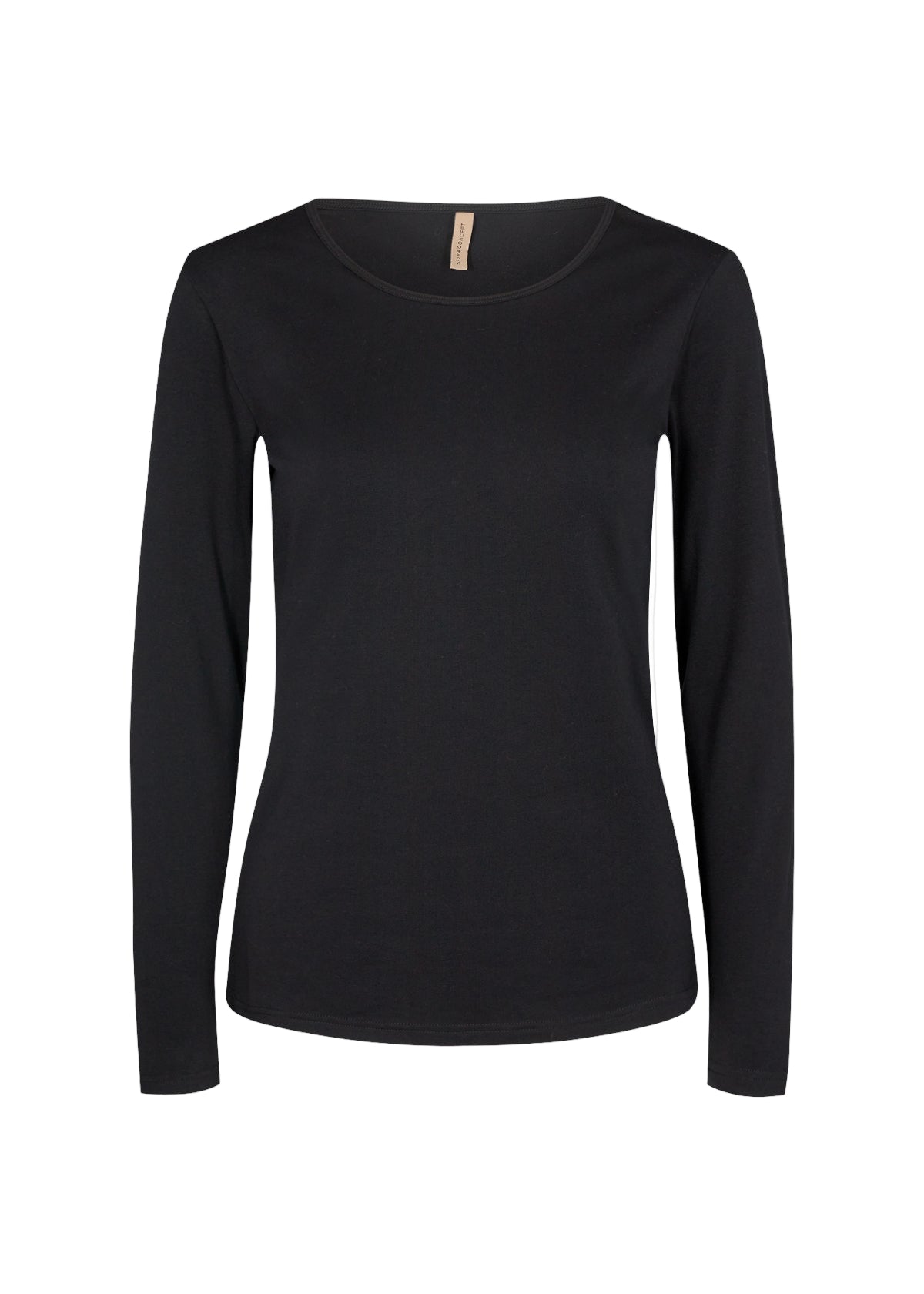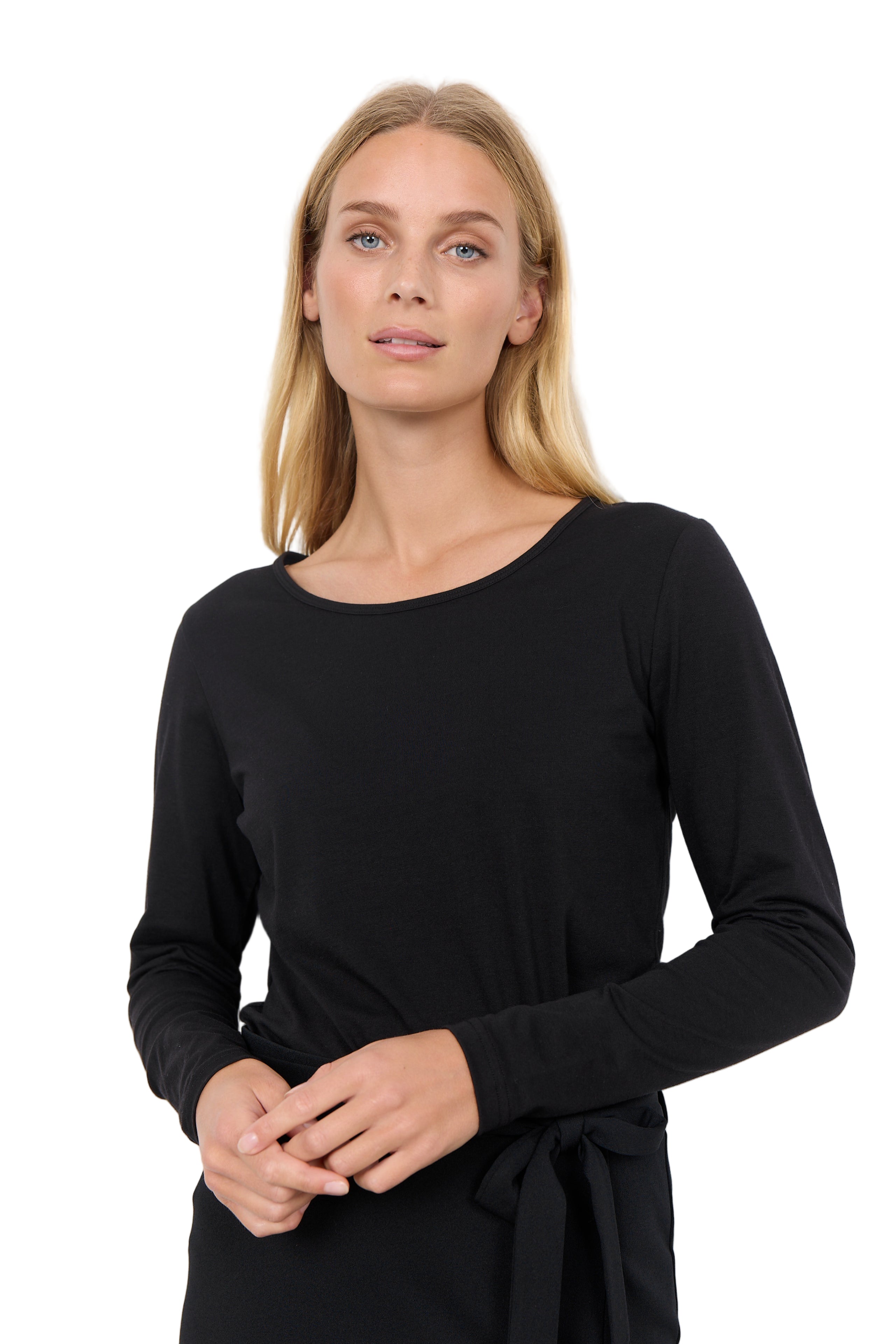 Effortless elegance meets everyday comfort in this essential scoop neck top. Crafted with a subtle stretch fabric, it moves with you while maintaining its refined silhouette. The minimalist design and long sleeves make it endlessly versatile—layer it under blazers for polished workwear or pair it with your favorite denim for understated weekend style. A wardrobe staple that transcends seasons and occasions.