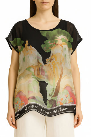 Joseph Ribkoff Silky Knit And Mesh Trapeze Top