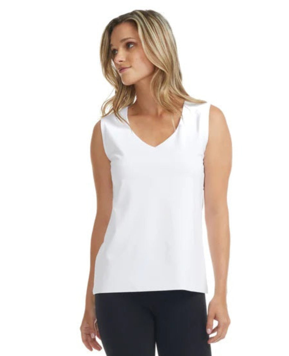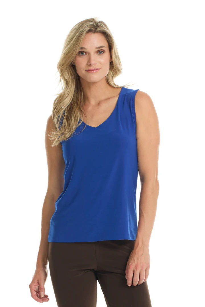You can never have too many basic layering pieces for optimum comfort and insulation all year round. This sleeveless cami top is designed with a v-neckline and double-lined construction, making it ideal for adding accessories such as a bold statement neckpiece. Crafted from the proprietary Interlock Twist Yarn (ITY/DTY), this lightweight yet remarkably strong knit fabric features a smooth, flowy drape with a subtle sheen. Extraordinarily breathable and wrinkle-free, it offers a soft texture and sleek finish with just enough stretch for all-day comfort. Perfect for layering or wearing solo, this versatile cami transitions seamlessly through every season.