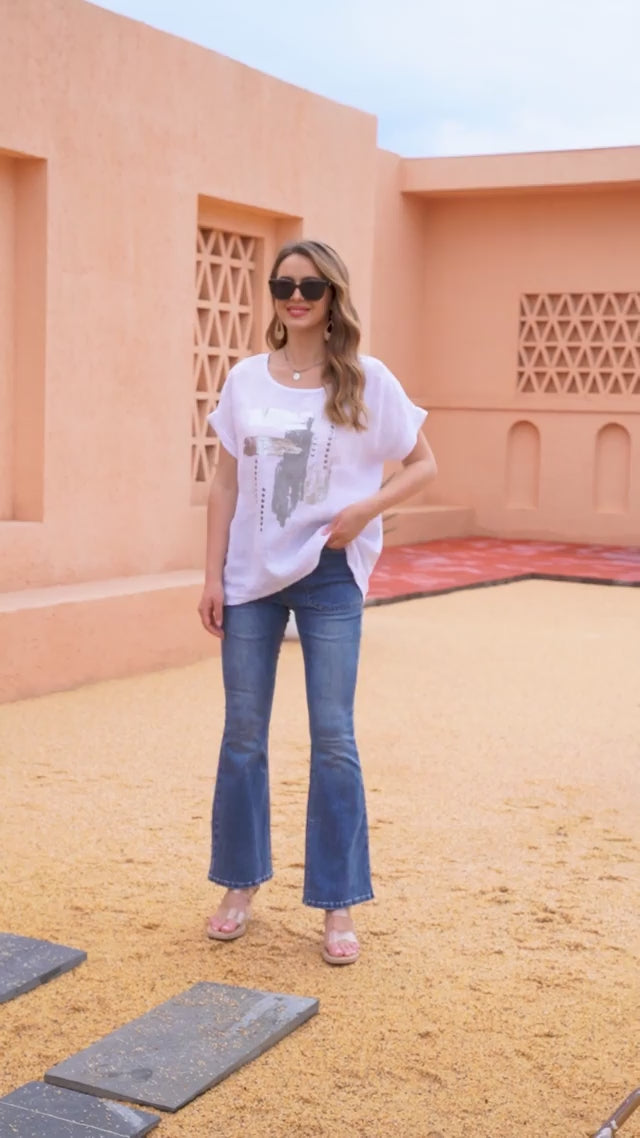 The OFV Metallic Top brings effortless sophistication to your everyday wardrobe. Featuring striking silver and gold brushstroke accents complemented by delicate shimmering circles, this piece delivers just the right amount of glamour without compromising on comfort. The minimalist base lets the metallic details take center stage, making it versatile enough to dress up for special occasions or down for casual outings. Perfect for anyone seeking a statement piece that feels both wearable and refined.