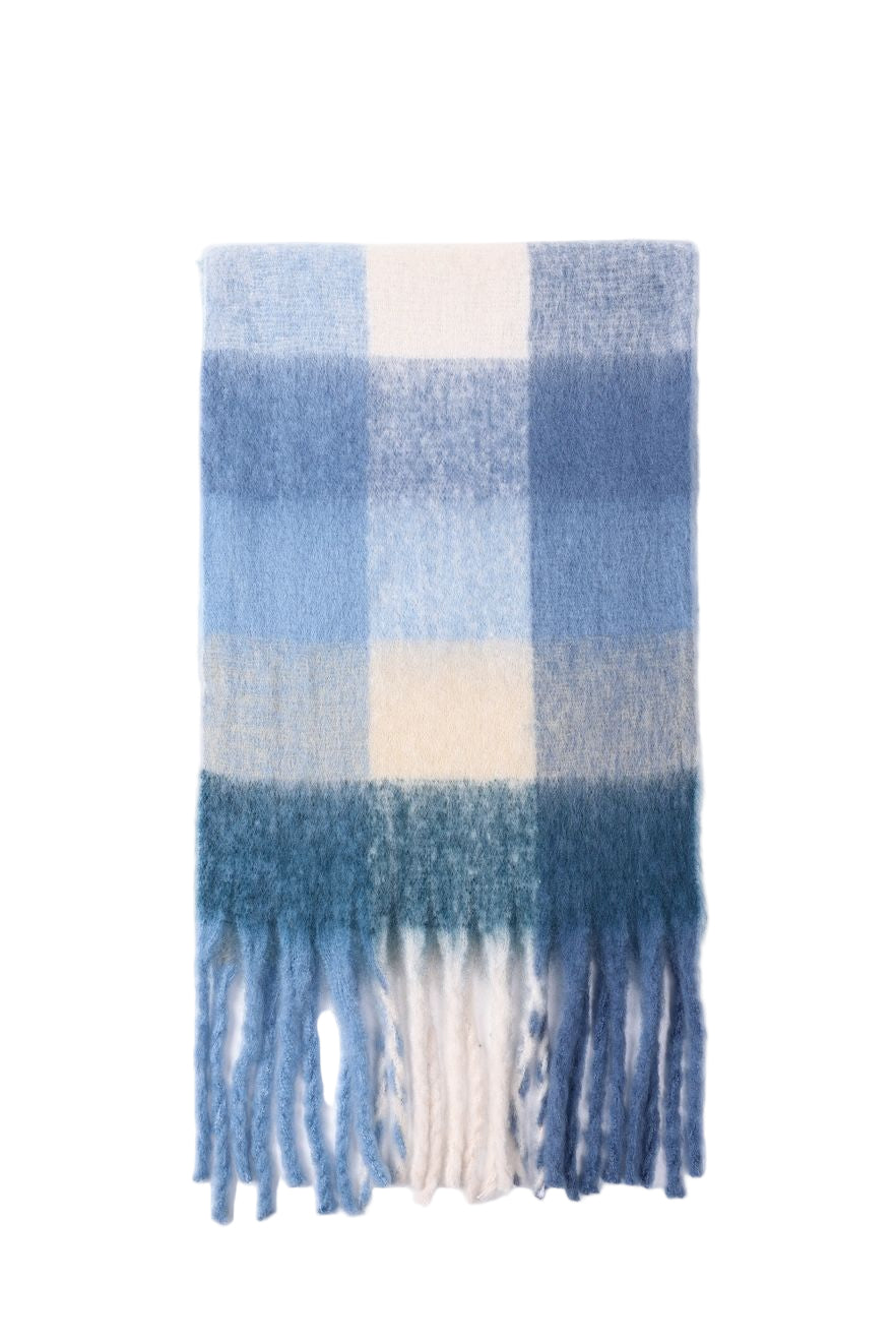 Wrap yourself in cozy charm with this plaid print scarf, featuring a fuzzy knit texture that's as soft as it is stylish. Playful tassels dangle from the ends, adding a touch of whimsy to your everyday look. Perfect for layering over your favorite outfits, this versatile accessory brings warmth and personality to any season. Whether you're heading out for coffee or a casual stroll, this scarf is your go-to companion for effortless style.